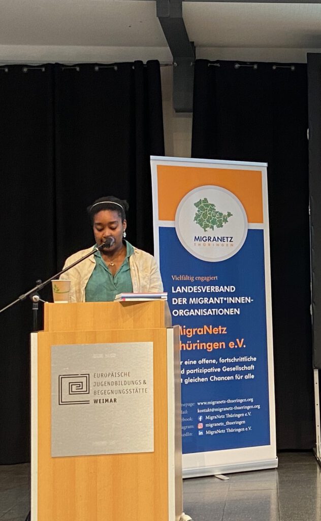 Es ging um die Frage, wie Eltern, Fachkräfte, Politik und zivilgesellschaftliche Akteure gemeinsam daran arbeiten können, Wege für mehr Mitwirkung, Chancengleichheit und Teilhabe zu entwickeln. In einem Impulsvortrag stellte Arhea Marshall das Projekt „Schule ohne Rassismus – Schule mit Courage“ vor.
