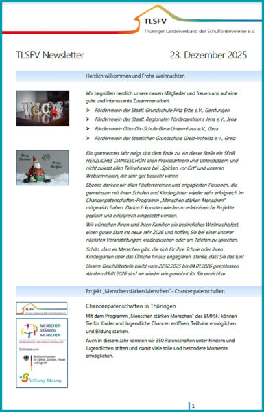 - Neue Mitglieder im TLSFV / 20jähriges Fördervereinsjubiläum